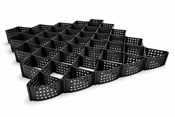 - Estructura tridimensional: celdas interconectadas que confinan el material de relleno para aumentar la rigidez y estabilidad del suelo.